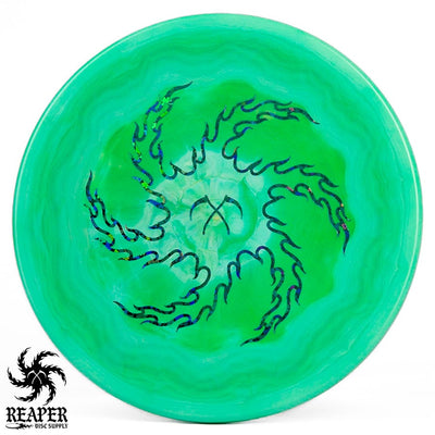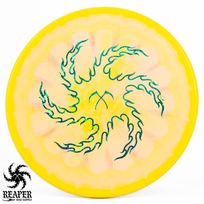 Turn up the beef with our Discraft Brodie Smith ESP Zone OS - Reaper Edition! This overstable beast boasts a double-sided stamp, featuring Brodie Smith's Tour Series on the bottom and our Reaper Edition 'flaming vortex' stamp on top.
