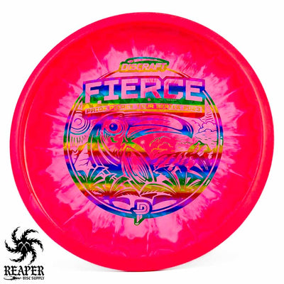 Featuring a bottom stamped Toucan and outrageous colors, this Paige Pierce Tour Series Fierce is made with Discraft's premium ESP Swirl plastic and help support her on tour!