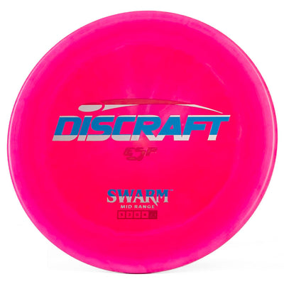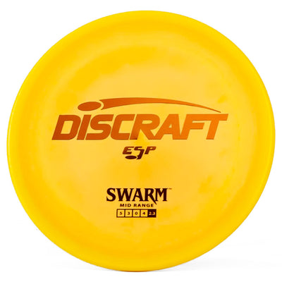 The Discraft ESP Swarm is a meathook midrange that commands respect with its impressive 0 turn and hefty 4 fade, delivered in Discraft's premium ESP plastic that provides excellent grip in all weather conditions.