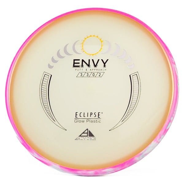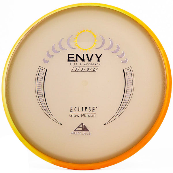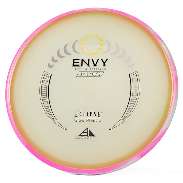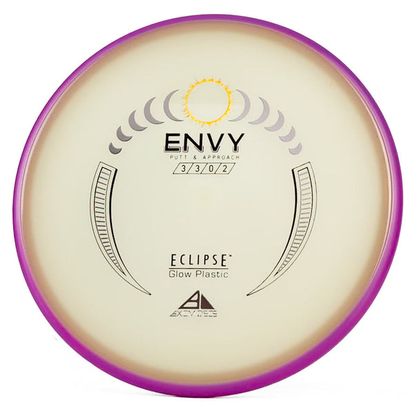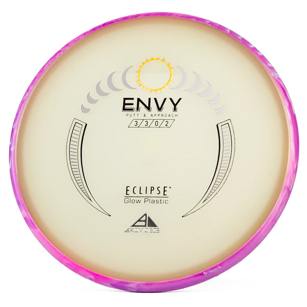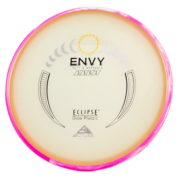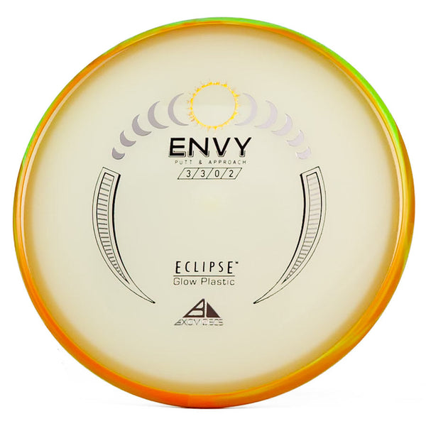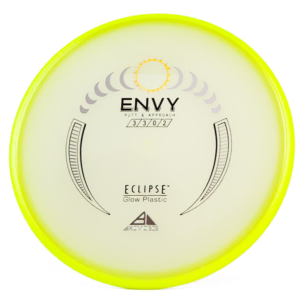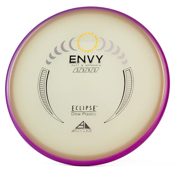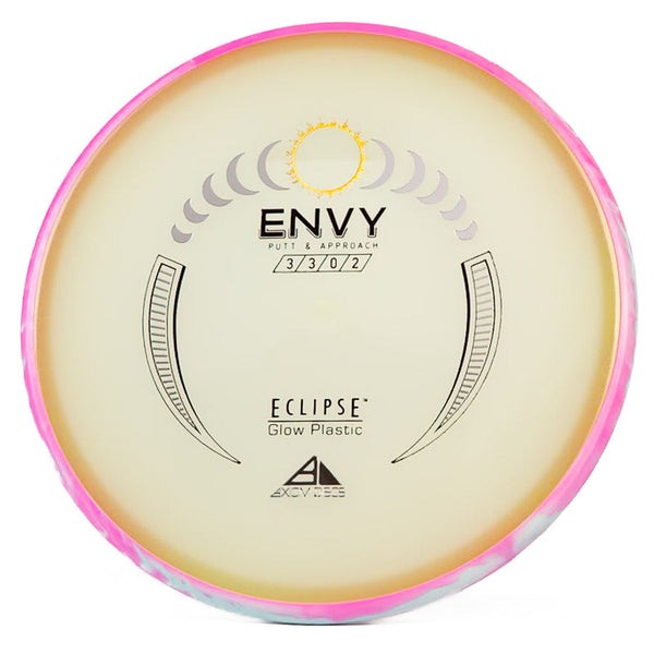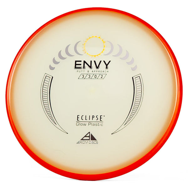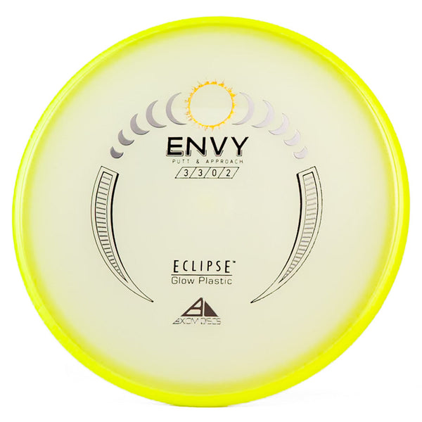 The Axiom Eclipse 2.0 Glow Envy is a slightly overstable disc used for putting and approach shots. When the new Axiom Disc Golf line was created in early 2014, the Envy was the first putter mold put out on the market.