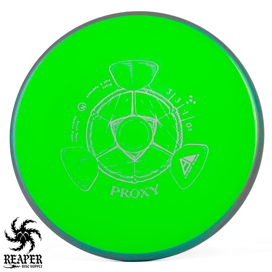 The Axiom Neutron Proxy is the ultimate straight-flying throwing putter that delivers exceptional accuracy and control. With its low-profile rim and premium plastic, the Neutron Proxy offers a comfortable grip and superior glide. This versatile approach disc is perfect for both putting and throwing, and its stable flight path makes it a great choice for players of all skill levels - especially beginners. Whether you're hitting the chains or maneuvering through wooded fairways, the Axiom Neutron Proxy will help you hit your line.