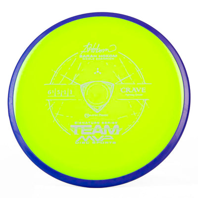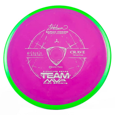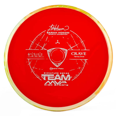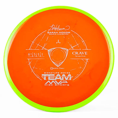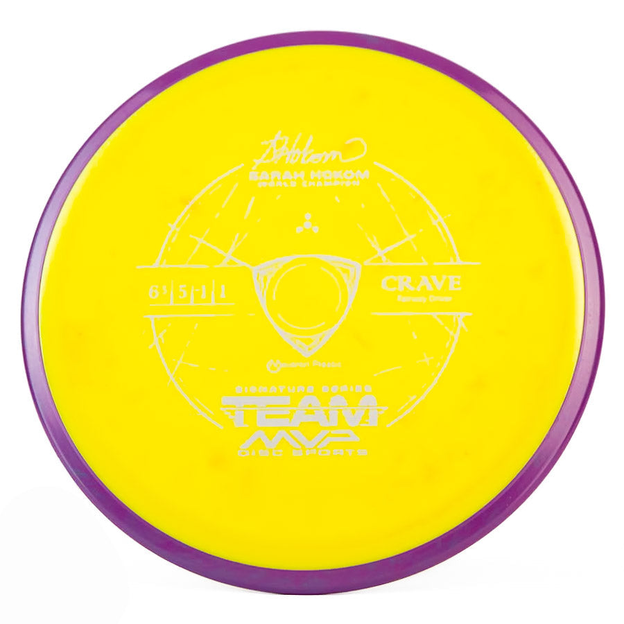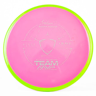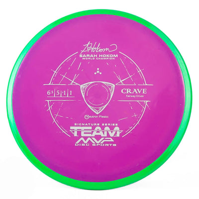 MVP's Team Series discs feature unique stamps and directly help their sponsored players on tour. The Crave is a stable fairway driver that can be used by any level of player. Don't miss out on this awesome Sarah Hokum Crave!