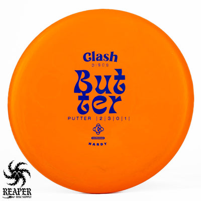 The Clash Discs Hardy Butter is an incredible putting putter for any skill level of players. Featuring a grippy and hard baseline putting plastic, this baby was designed to grip some chains and feels incredible in the hand!