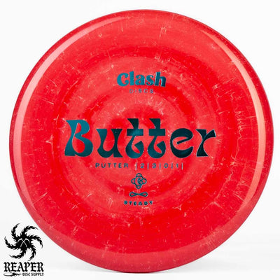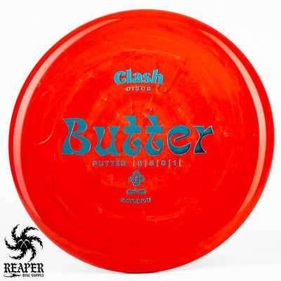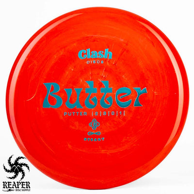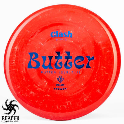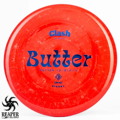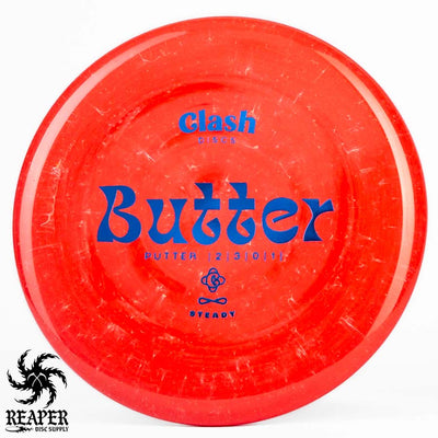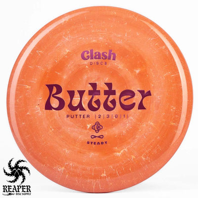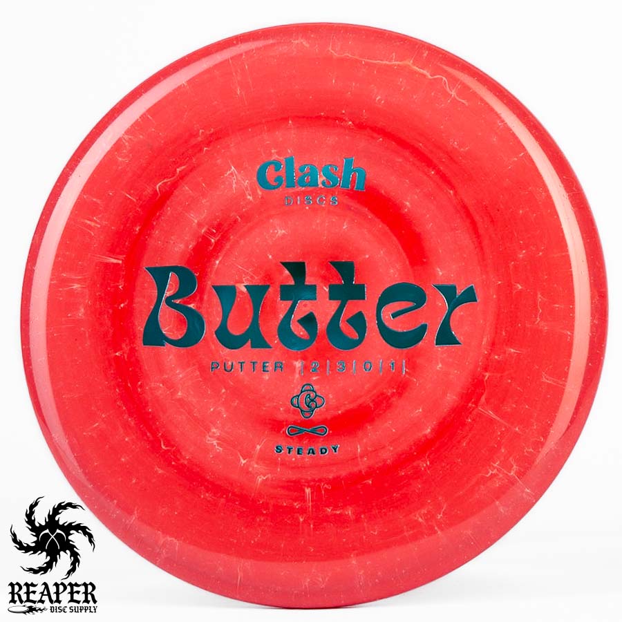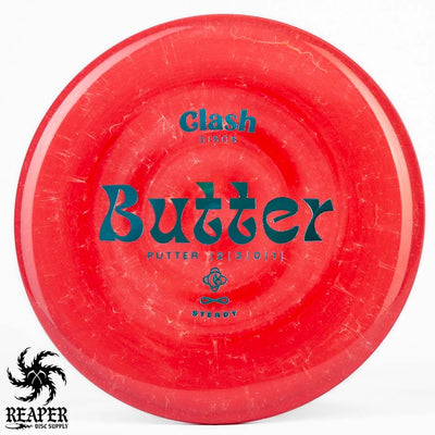 The Clash Discs Steady Butter is an awesome throwing putter and approach disc. The Steady plastic holds up nicely so it can take a bit of a beating without losing stability. If you are in the market for a premium plastic disc golf putter, check out these Clash Discs Steady Butters!