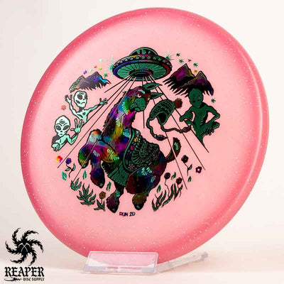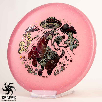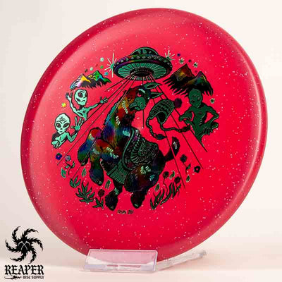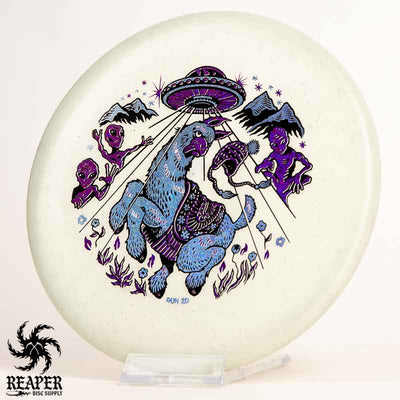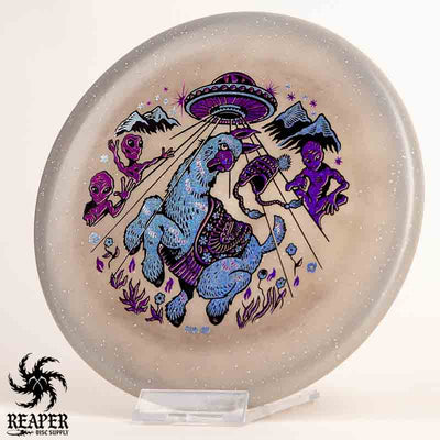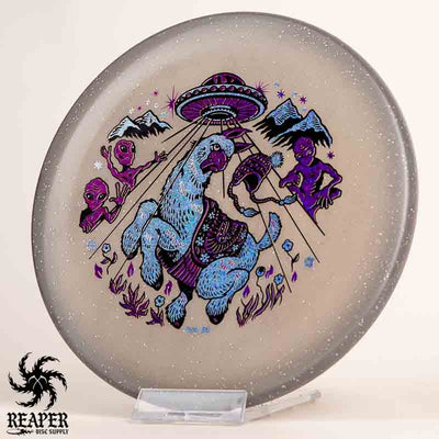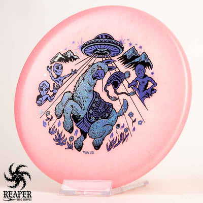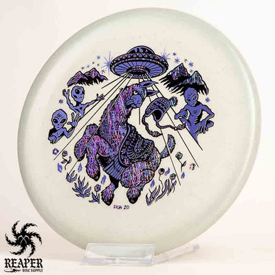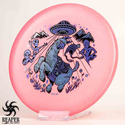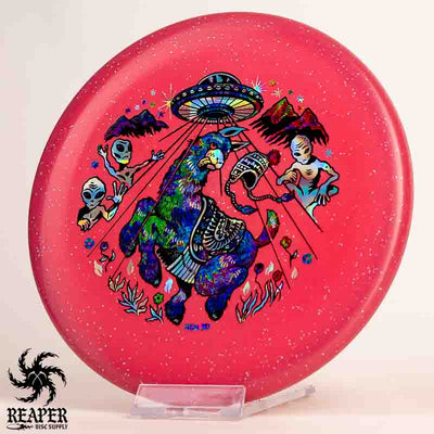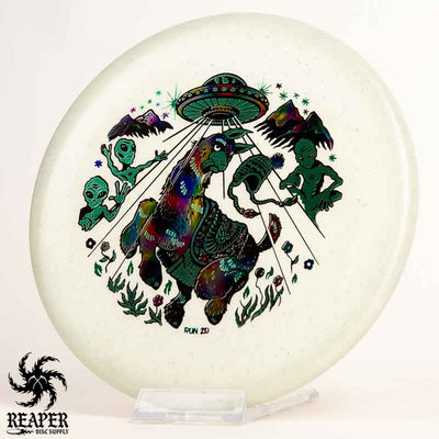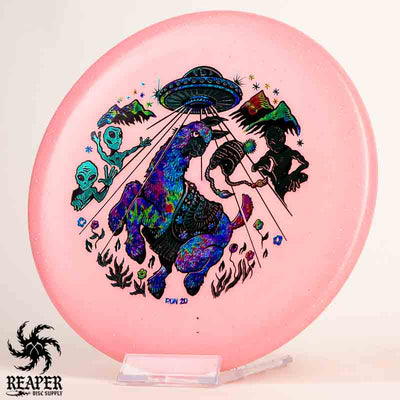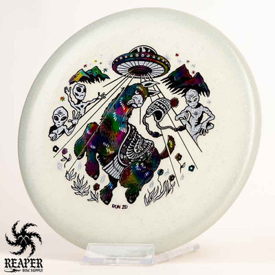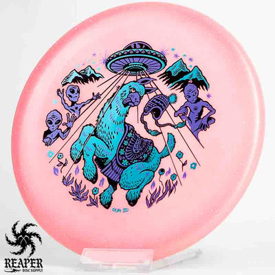 The Infinite Discs Metal Flake Glow C-Blend Alpaca is a stable putt and approach disc with an awesome stamp!
