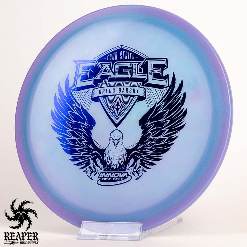 The Innova Champion Glow Eagle is Gregg Barsby's 2022 Tour Series disc, and they couldn't be cooler. Featuring gorgeous swirly premium Champion Color Glow plastic and a traditional style eagle stamp, this disc is a must-have for any Eagle lover's bag.