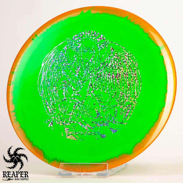 The Sphinx is a perfect driver for beginners since it has a ton of glide and turn, and the 9-speed rating doesn't take a tremendous amount of power to throw. Infinite's (really Innova's) S-Blend Halo plastic is a very beefy plastic that makes this traditionally understable driver lean a little more towards stable. Don't miss out on adding one of these dope Halo Sphinx to your bag.