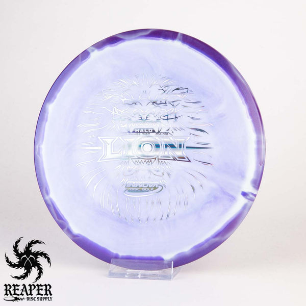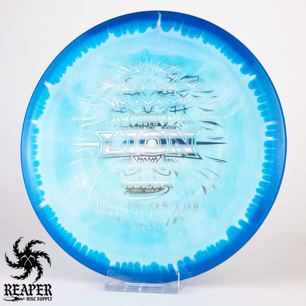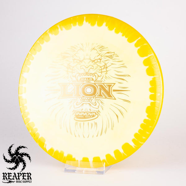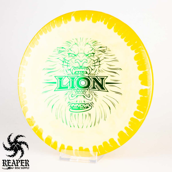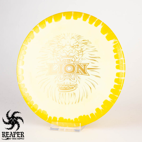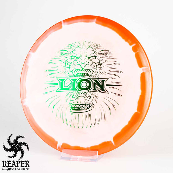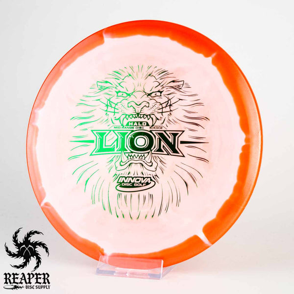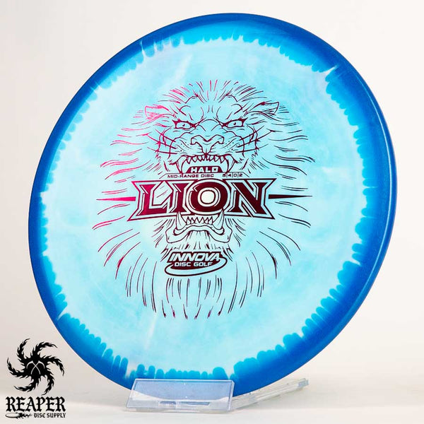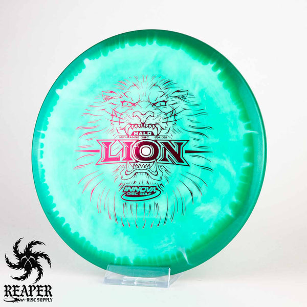 The Halo Lion may be Innova's best kept secret. The Innova lion is a reliable flying overstable stable midrange. A more stable version of the Mako3 - the Lion will quickly become your new favorite midrange. The flight pattern of this disc is similar to throwing a beat-in Roc.