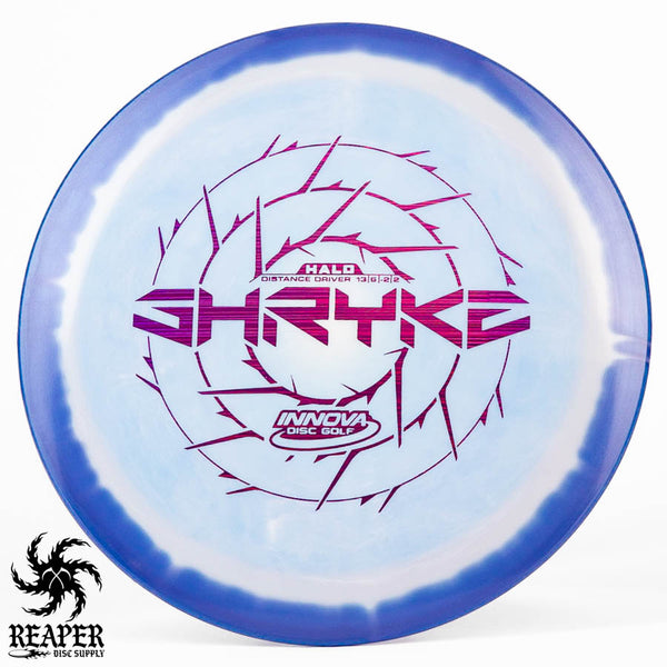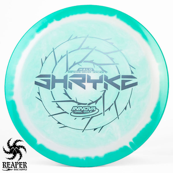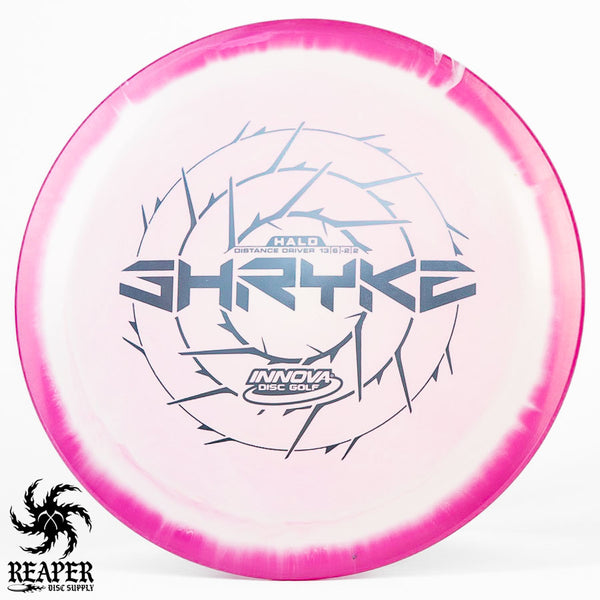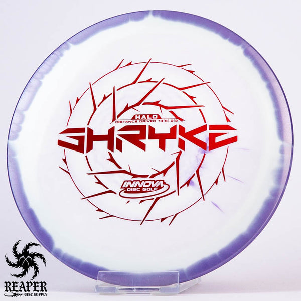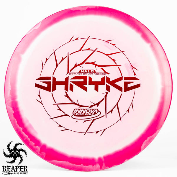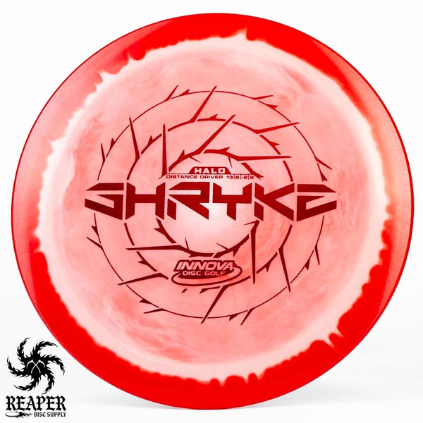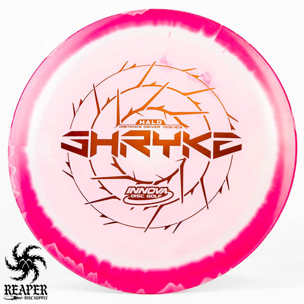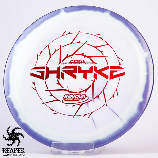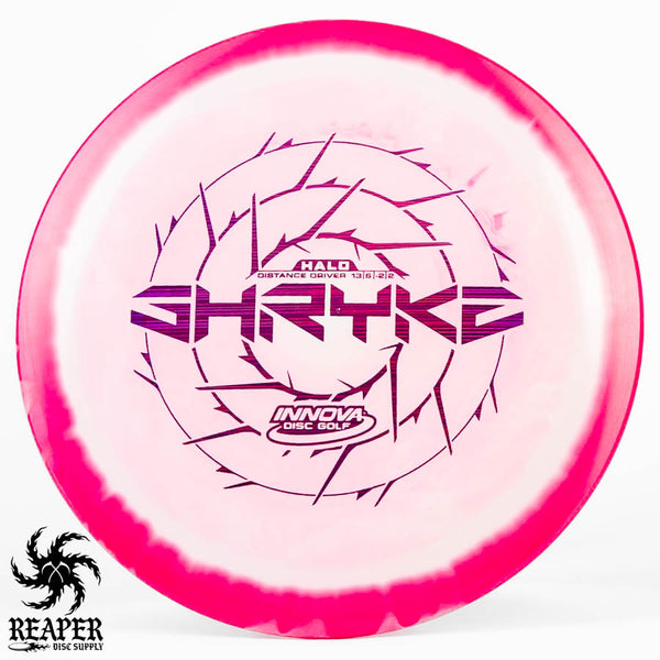 The Innova Halo Star Shryke is a 13-speed stable distance driver with lots of glide and an awesome stamp. The Halo Shryke is a great driver for players with lots of arm speed, and advanced players will be able to easily hyzer flip this disc for max distance shots.
