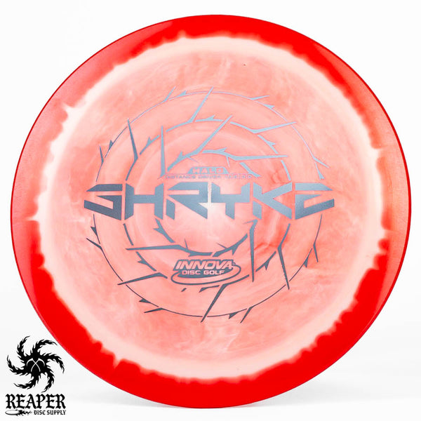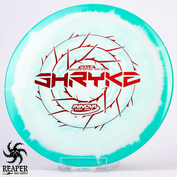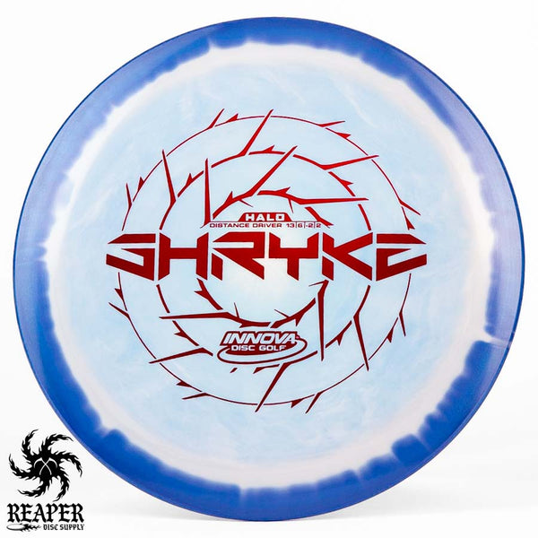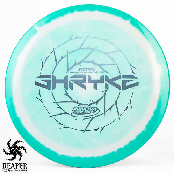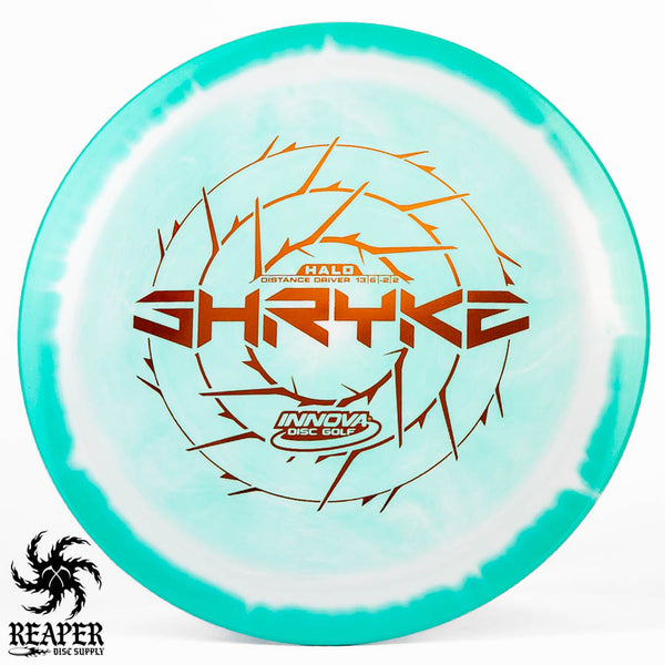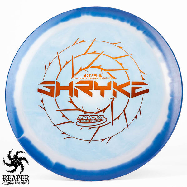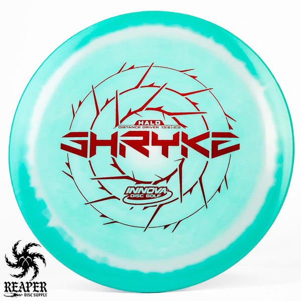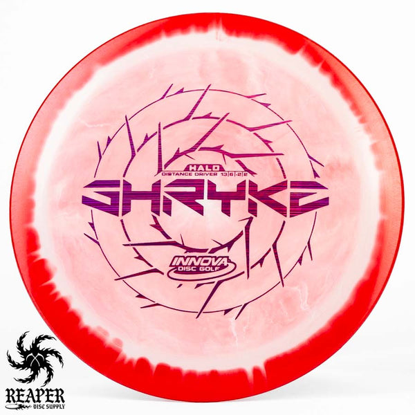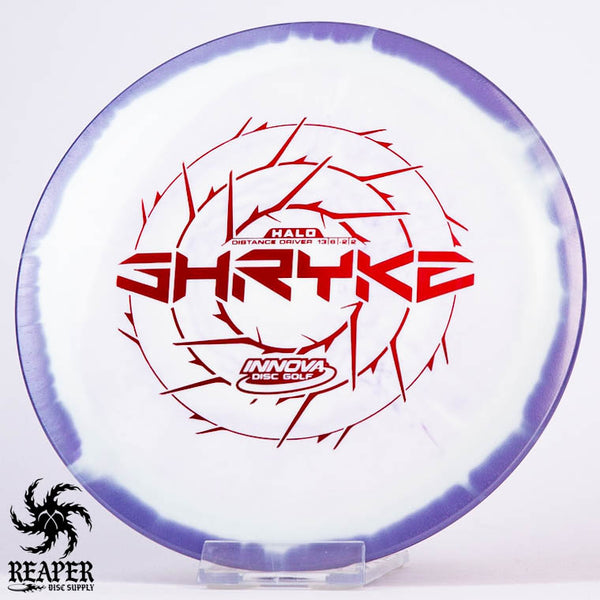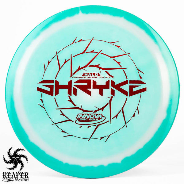 The Innova Halo Star Shryke is a 13-speed stable distance driver with lots of glide and an awesome stamp. The Halo Shryke is a great driver for players with lots of arm speed, and advanced players will be able to easily hyzer flip this disc for max distance shots.