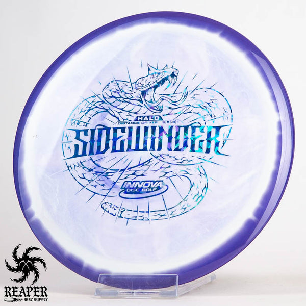 The Innova Halo Star Sidewinder is an understable disc golf distance driver that is perfect for players of all skill levels. Innova's Halo Star plastic tends to be slightly more stable and beefy than their traditional Star, so we would rate the fade on this closer to a 2 than a 1.