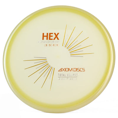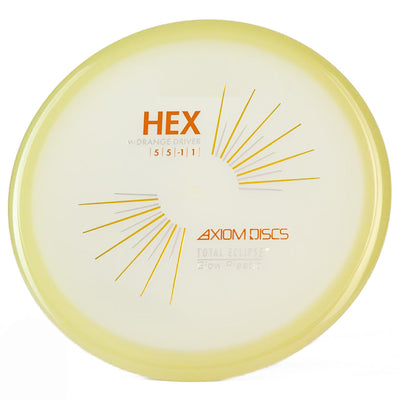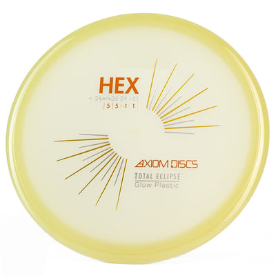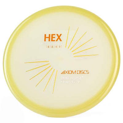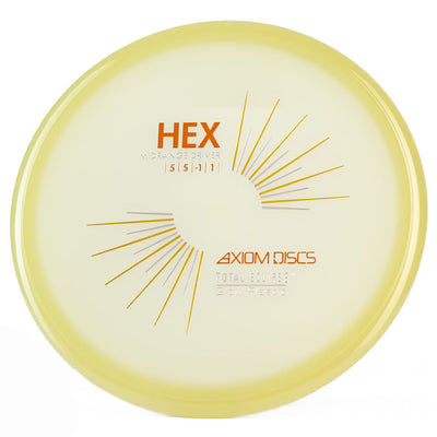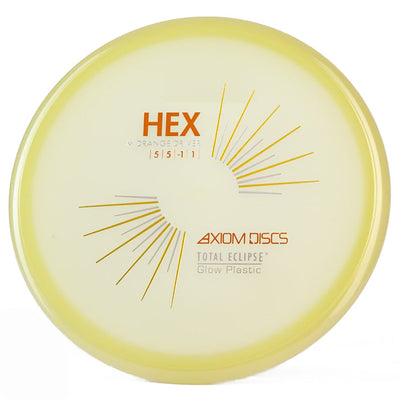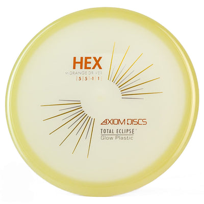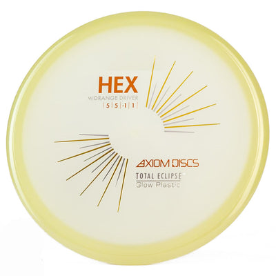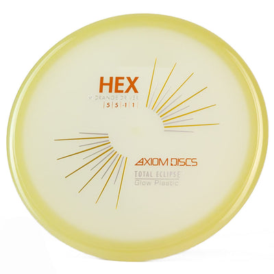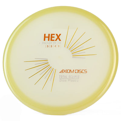 The Axiom Total Eclipse Hex takes the already buttery smooth flight characteristics of the standard Hex and adds supernatural glow performance with its innovative dual-glow construction, perfect for those twilight rounds when you need precise midrange control. You're going to love how this disc maintains that perfect neutral stability whether you're throwing touch shots through tight gaps or working those finesse approaches, with just enough high-speed turn to hold whatever line you put it on without worrying about an aggressive fade. The Total Eclipse plastic's enhanced GYRO effect gives you confidence for those power grip releases when you need to park your upshots, while the dual-glow technology ensures maximum visibility during those spooky glow rounds where accuracy is everything.