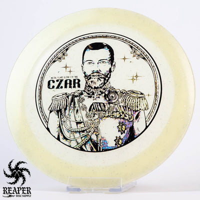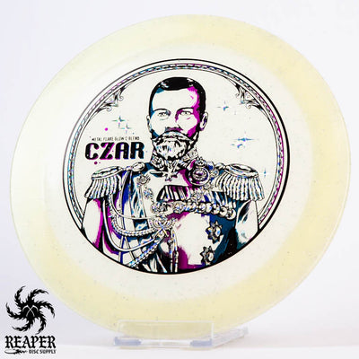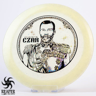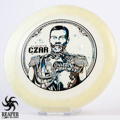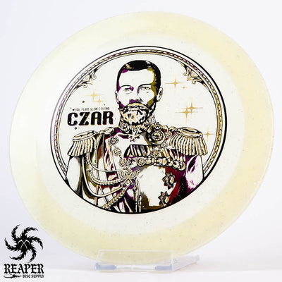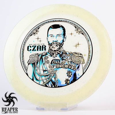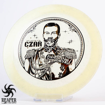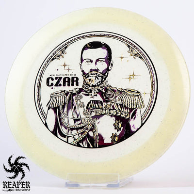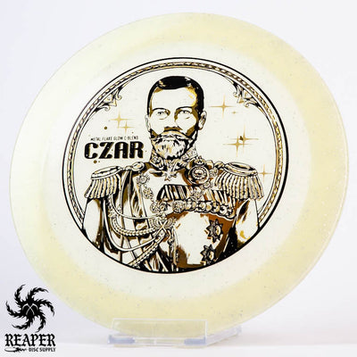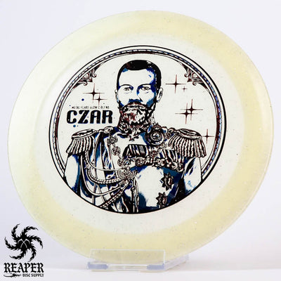 The Infinite Discs Metal Flake Glow C-Blend Czar is a dependable, overstable distance driver that glows in the dark. The Infinite Czar (in my opinion) feels and flies very similarly to an Innova Wraith. It is a workhorse driver that can get a ton of distance and is perfect for intermediate players. The rim isn't overly large and feels comfortable to grip for both forehand and backhand drives.