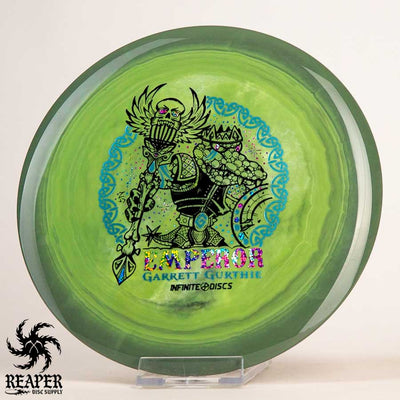 The Infinite Discs Swirly S-Blend Emperor is the perfect distance driver for Garrett Gurthie's signature disc. This Emperor is basically a Swirly Star Innova Destroyer that is (very) slightly less stable. It throws and flies like a Destroyer.