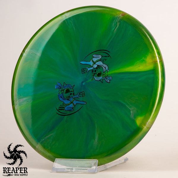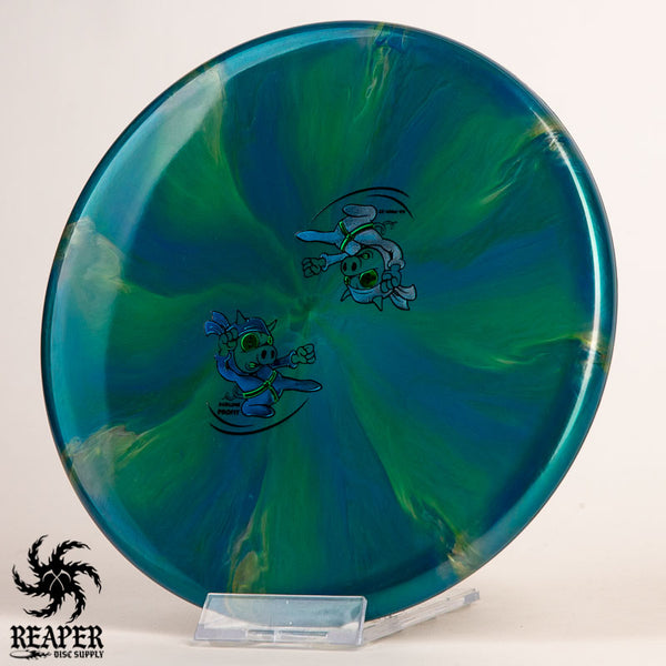 These limited-run Swirly Sublime Profits feature two cute little ninja pigs that look awesome when it's spinning. These Swirly Sublime colors are unbelievable and there are several different stamp colors to choose from!