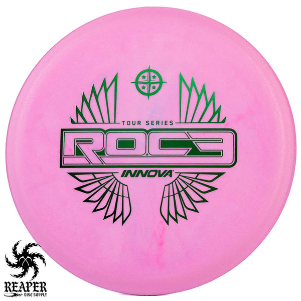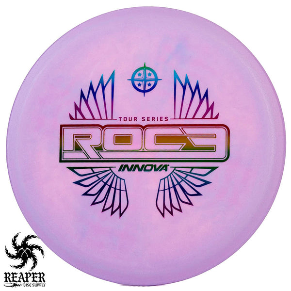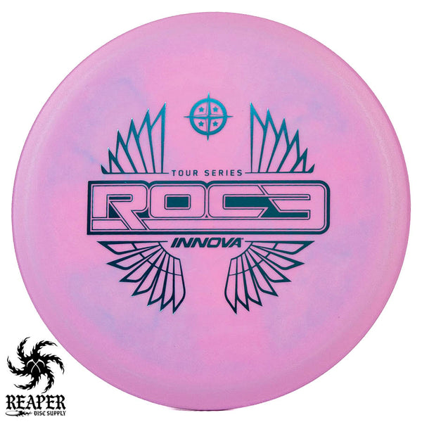 Innova's Tour Series Color Glow Pro Roc3 is a workhorse overstable midrange that comes in several gorgeous plastic colors and stamps. Pro plastic is one of the most comfortable plastics to throw - extremely grippy and soft, without sacrificing durability.