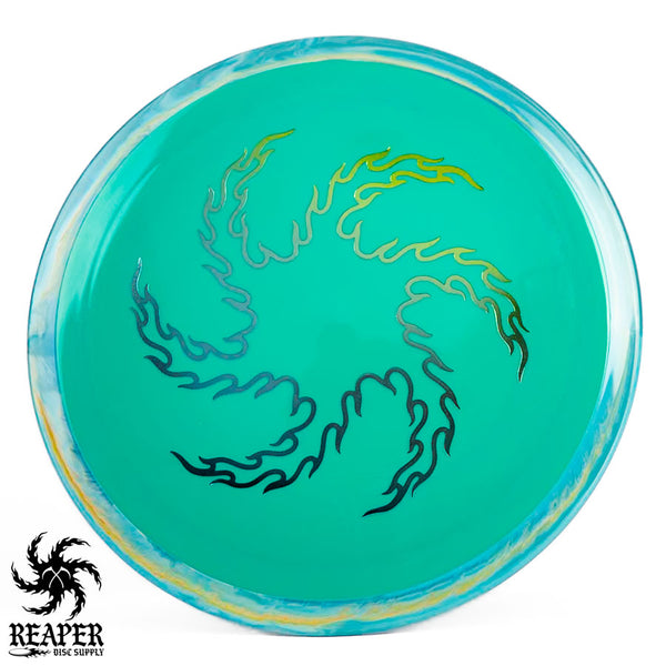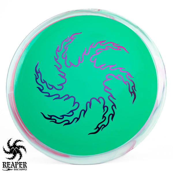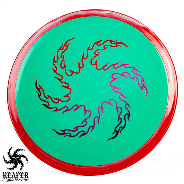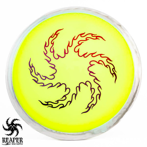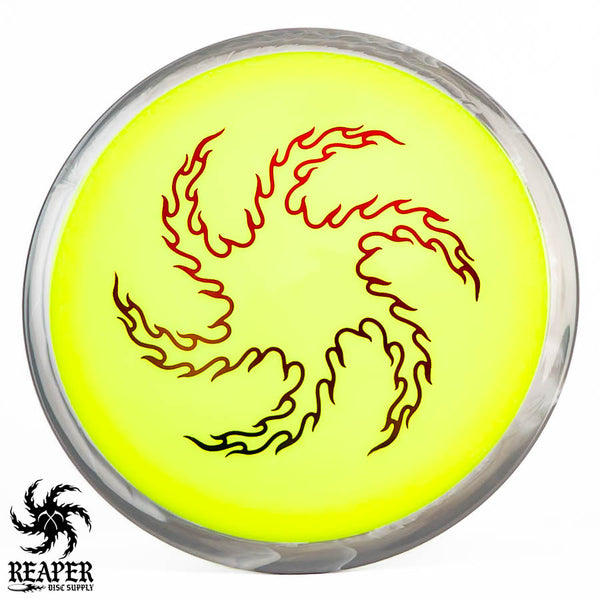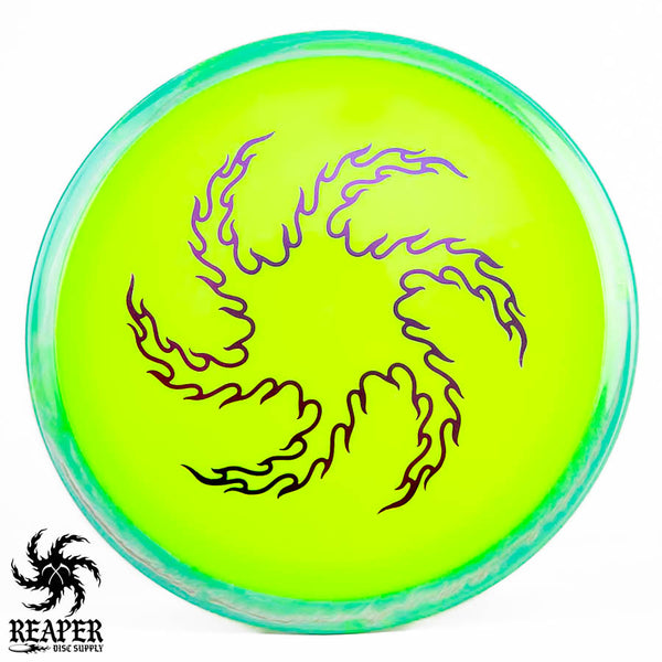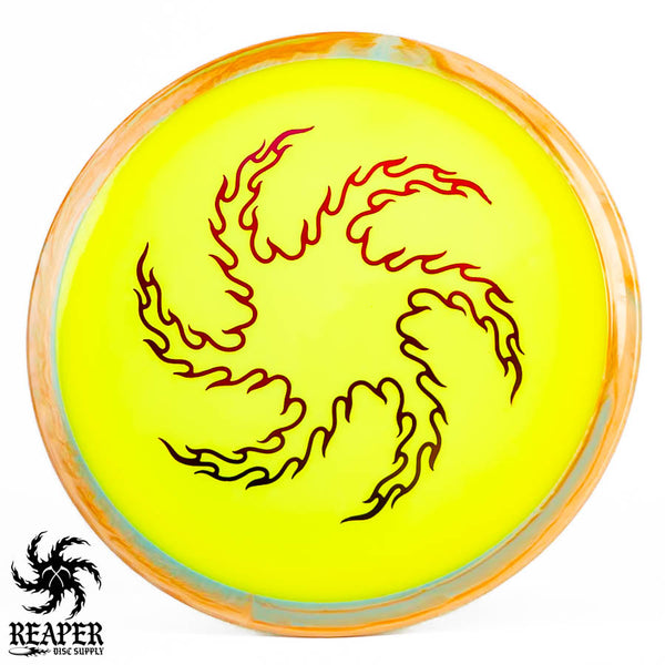 The Axiom Neutron Time Lapse (Reaper Edition) is a 12-speed distance driver, featuring our signature 'flame vortex' logo. This disc, designed with GYRO technology, offers a perfect blend of glide, turn, and fade, delivering controllable max-distance and a comfortable grip. It's an incredible driver for intermediate and advanced players.