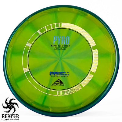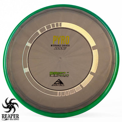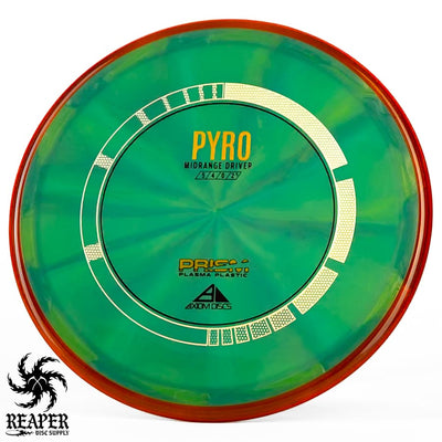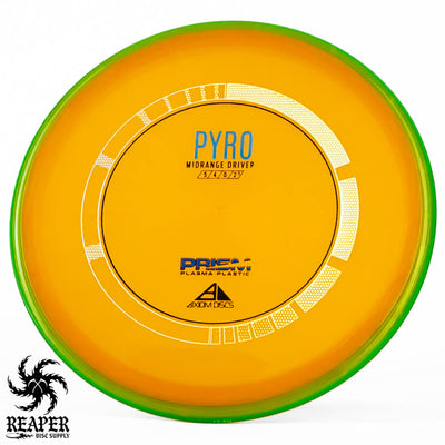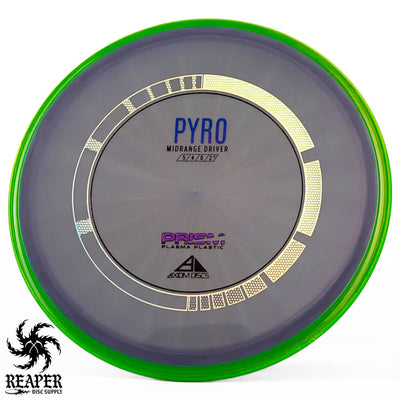 The Axiom Prism Pyro is an overstable midrange disc that is fantastic for windy conditions and is made with sparkly overmold plastic. Pyro plastic uses the same plastic as Plasma but with a sparkly, gummy rim.