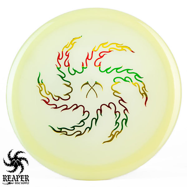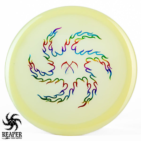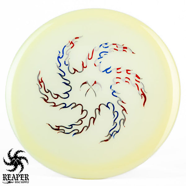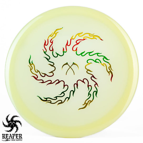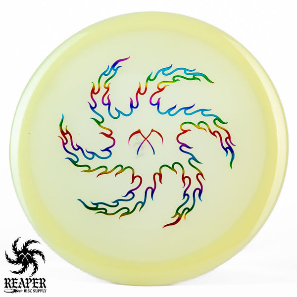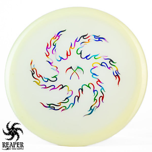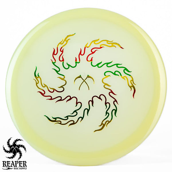 The Champion Glow Leopard3 feels amazing in the hand with a good amount of grip and a fairly flat top for a secure hold. When thrown by beginners, this disc provides a straight flight that slightly fades at the end, while more experienced players with higher arm speeds can use it for hyzer flip shots and long turnover lines. As it beats in, the Leopard3 becomes an excellent hyzer flip disc with a heavy turn and slight fade. The Innova Champion Glow Leopard3 is a fantastic choice for players wanting to learn finesse and hyzer flip techniques or simply looking for a reliable fairway driver to add to their collection.