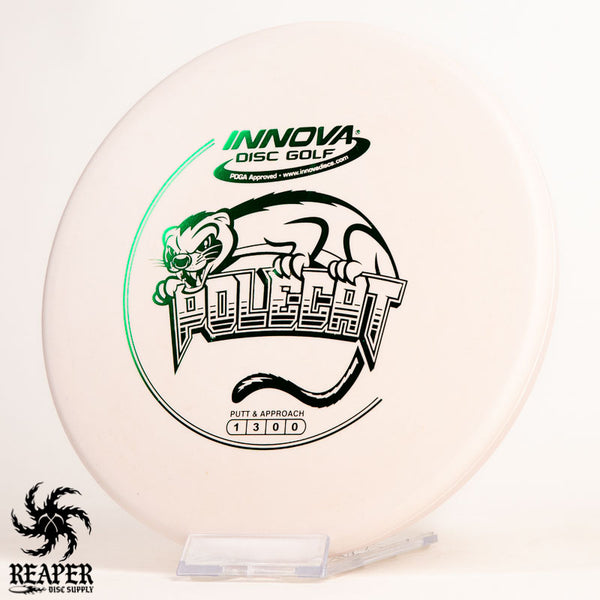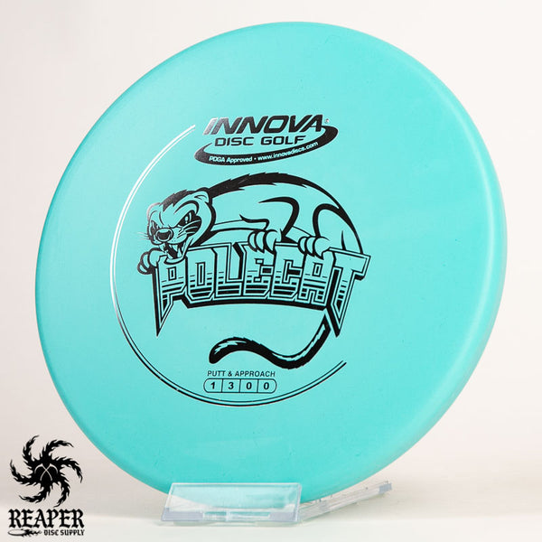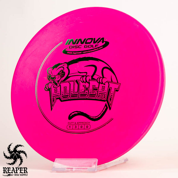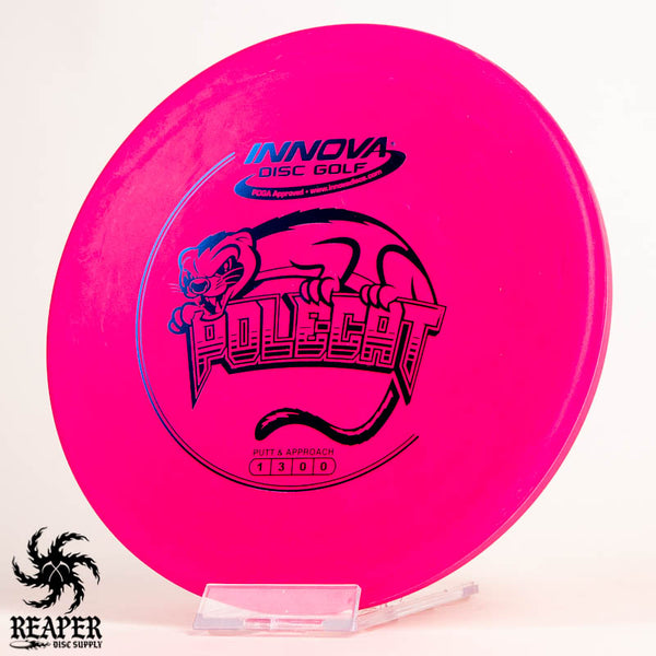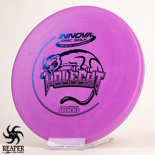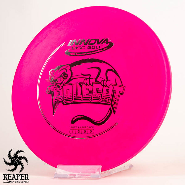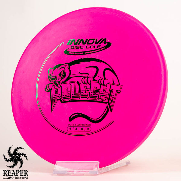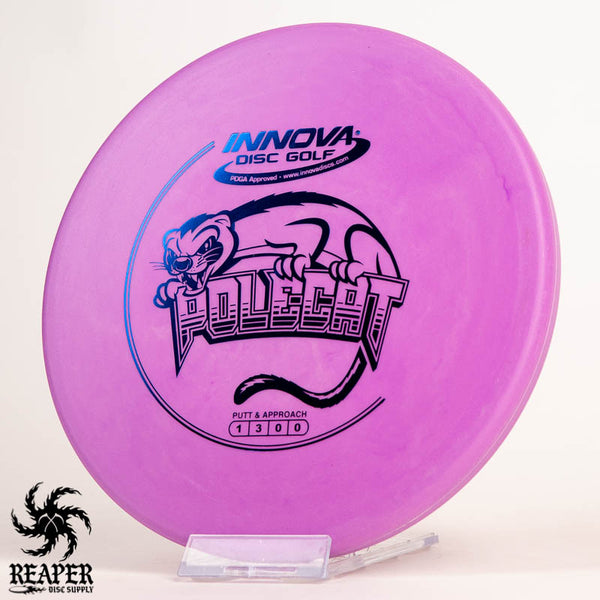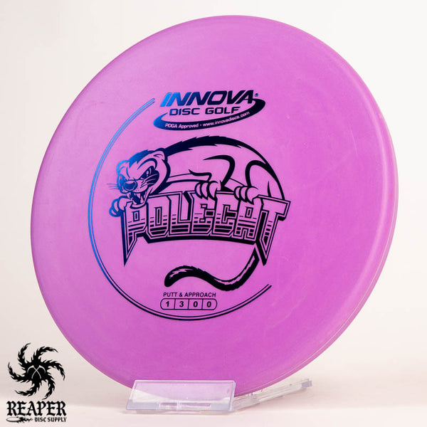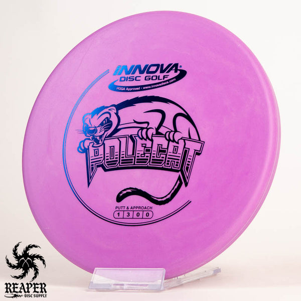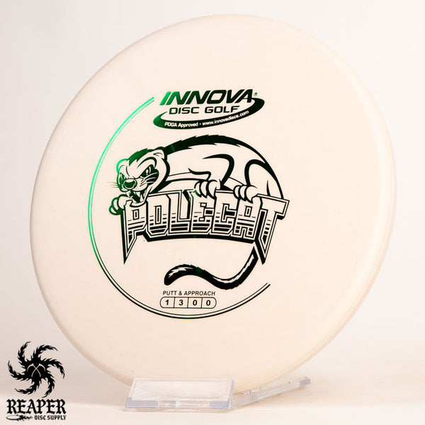 The Innova DX Polecat is a dead straight-flying putt & approach disc that is perfect for any skill level. Innova's DX plastic is a base-grade putting plastic that is easy to grip and clings to the chains.