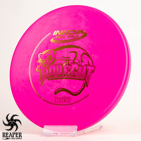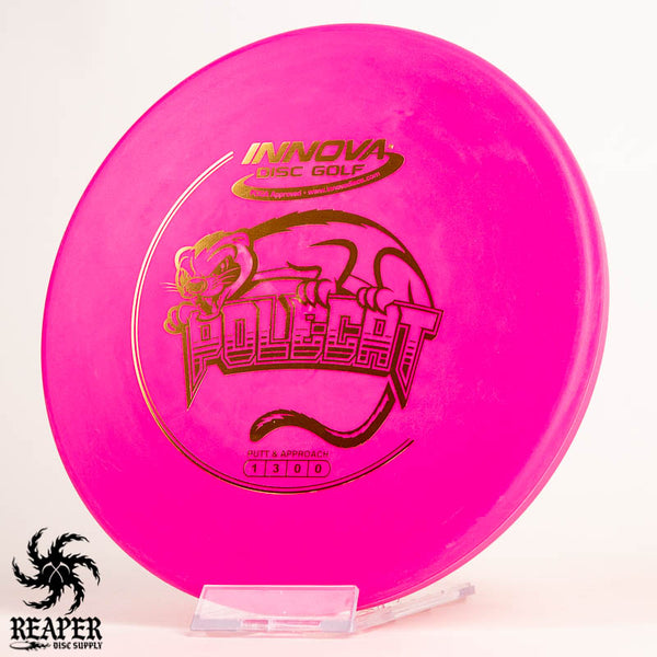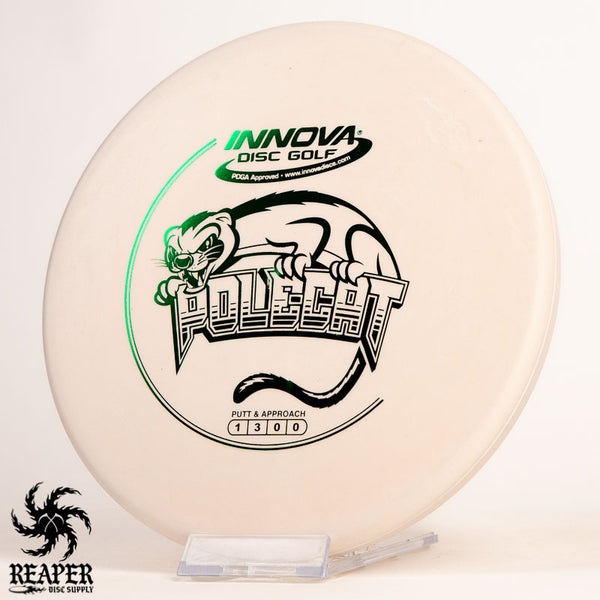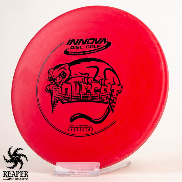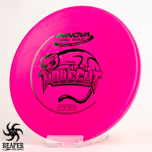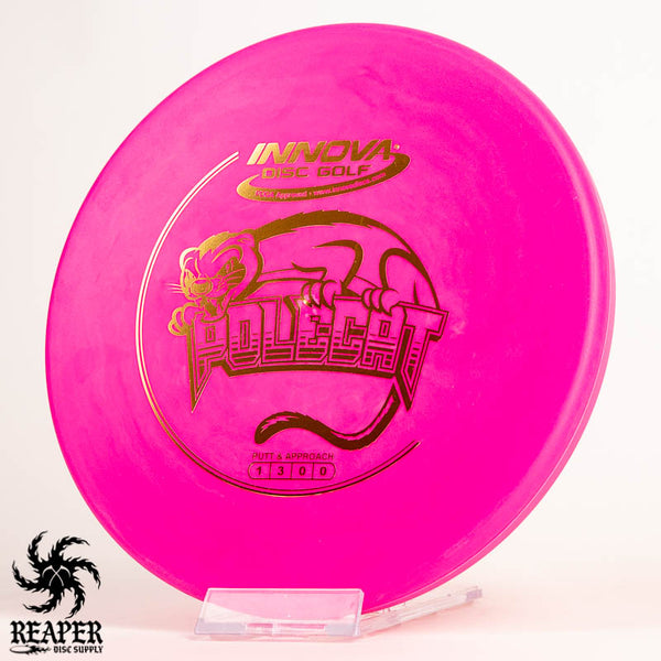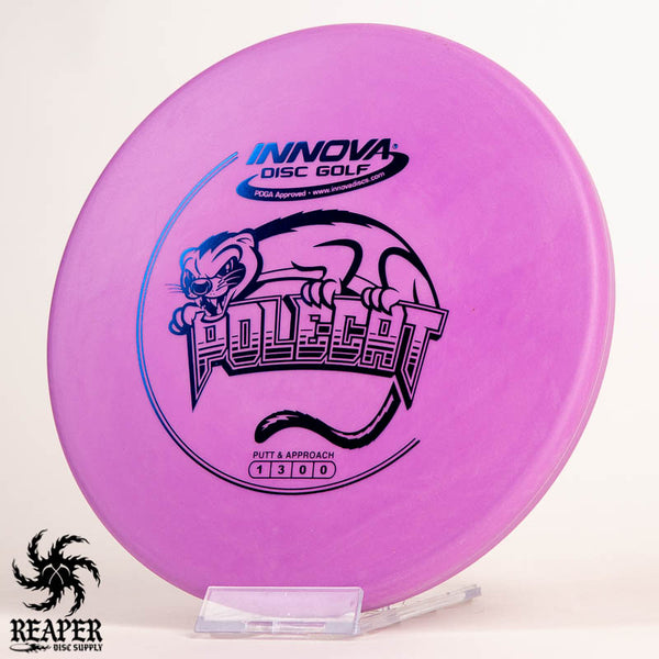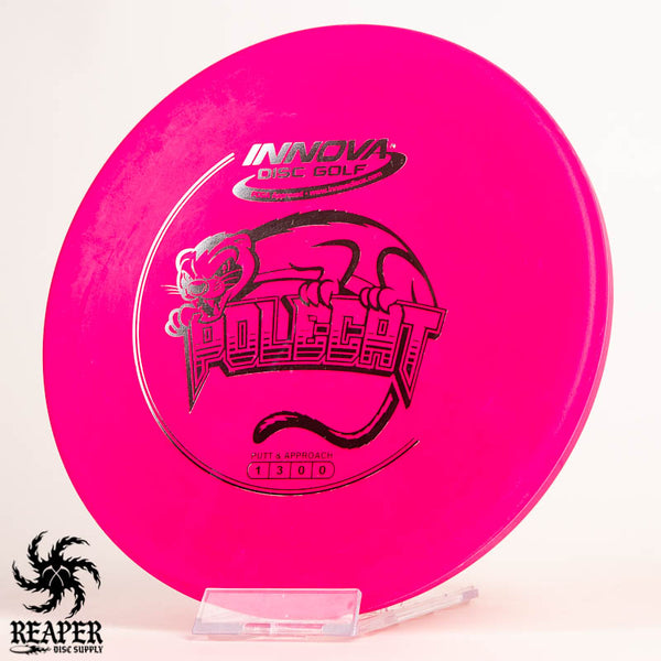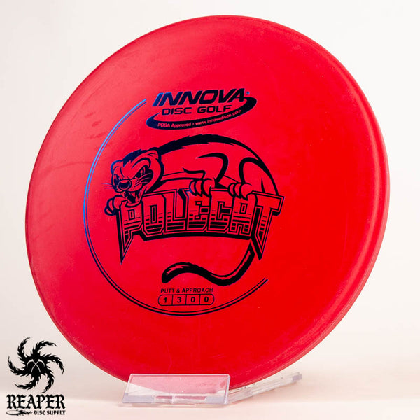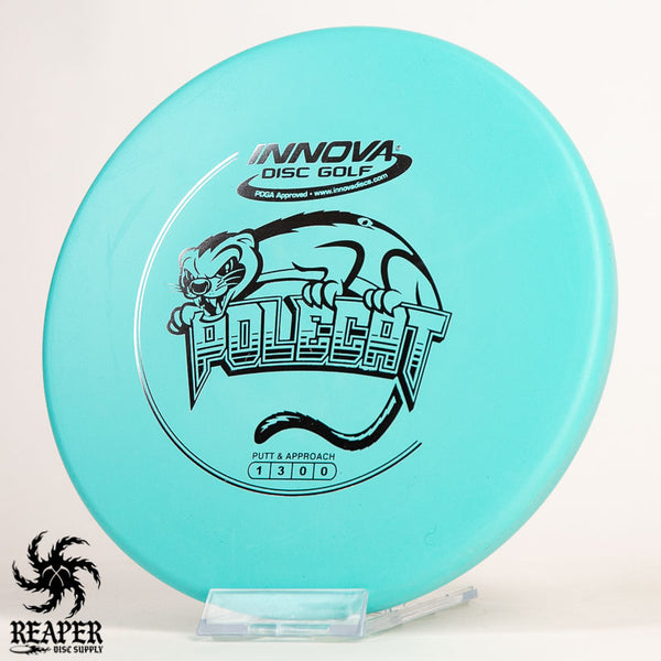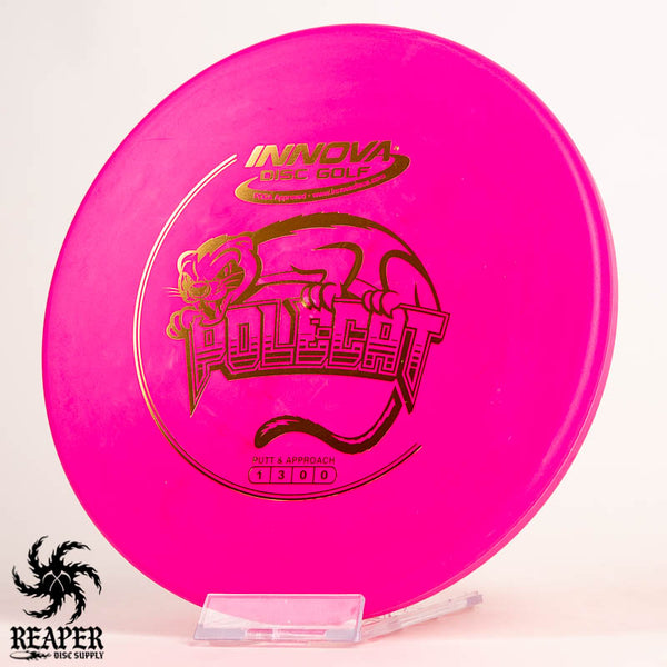 The Innova DX Polecat is a dead straight-flying putt & approach disc that is perfect for any skill level. Innova's DX plastic is a base-grade putting plastic that is easy to grip and clings to the chains.