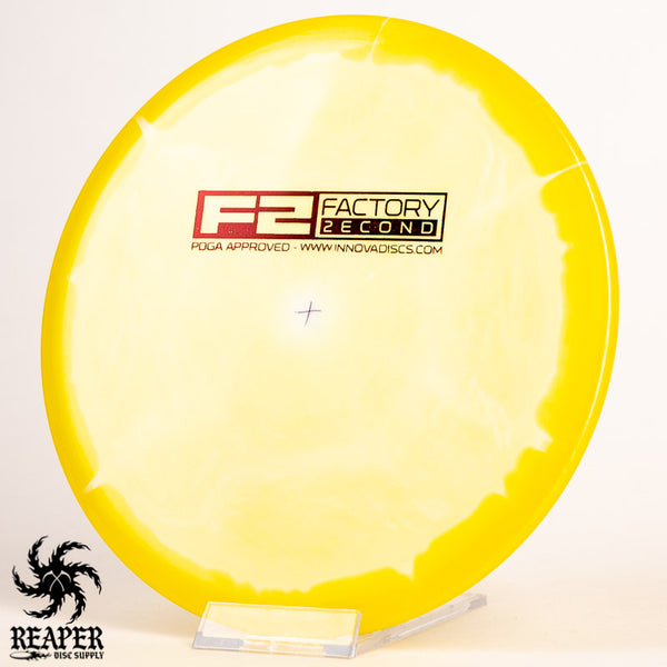 F2 Halo Lions may have minor cosmetic flaws; some have ink spots or miscolorations while others have small divots on the rim/top of the disc. This is how they come from Innova's factory and it's what makes them factory second discs.