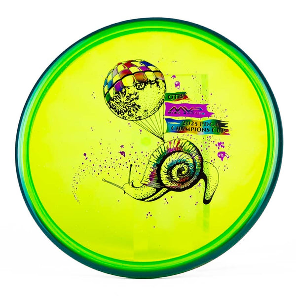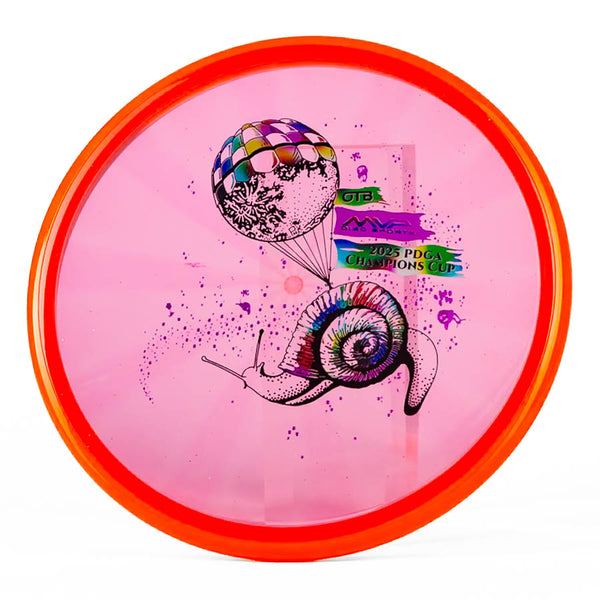 Find your target effortlessly with the Champions Cup edition Prism Proton Soft Envy, featuring Pirate Nate’s fan-favorite "Snail Mail" design. This putter delivers reliable straight-to-overstable flights for precision throws and confident putts.