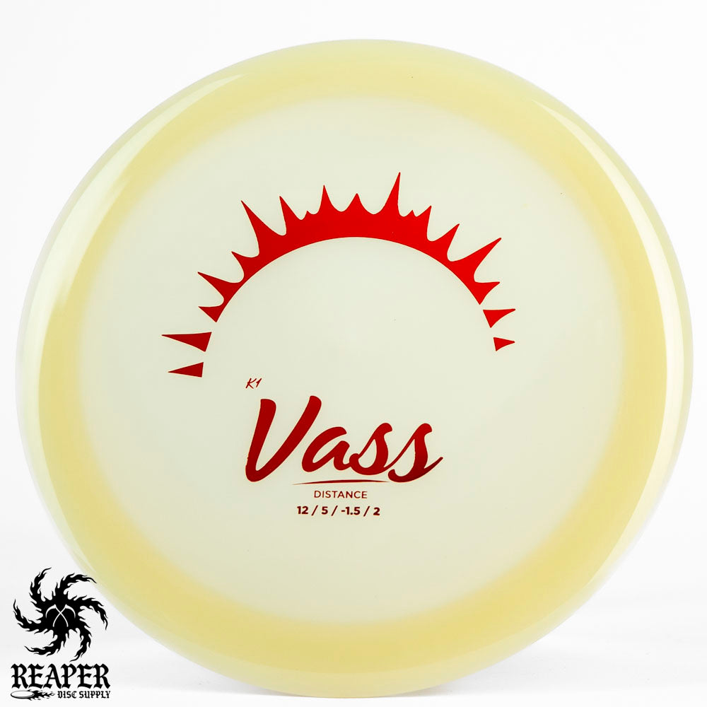 Illuminate the night sky with the Kastaplast K1 Glow Vass, a distance driver designed for majestic S-Curves and tailwind mastery. This disc, glowing with potential, caters to the everyday player, offering substantial glide for those seeking to carve the airways with grace and power.