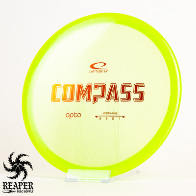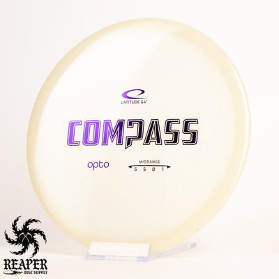 The Latitude 64 Opto Compass is a stable midrange great for players of all skill levels. The Compass is very similar to Discmania's C-Line MD3. The Opto plastic is a somewhat gummy, translucent plastic (similar to C-Line), and they both share the same flight numbers.
