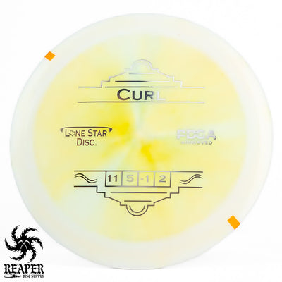 The Lone Star Discs Alpha Curl is made with high-quality Alpha plastic, bringing a premium feel to your game with its firm, grippy texture that stands up to the rigors of the course. This durable blend, comparable to Discraft's ESP line, offers a sturdy and reliable grip, ideal for those looking to maintain consistency in their throws. With the Alpha Frio in hand, expect a disc that not only lasts through countless rounds but also provides the stability and control required to navigate the fairways with confidence, regardless of the weather conditions.