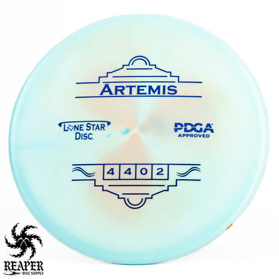 The Lone Star Discs Bravo Artemis, molded in durable Bravo plastic, offers an exceptional balance of grip and longevity. This superior plastic blend provides a slightly softer feel compared to Alpha, enhancing your grip for those critical putts and approaches. Trust in the Bravo Artemis for a stable flight and reliable fade, all while enjoying the comfortable, confident hold that Bravo plastic delivers.