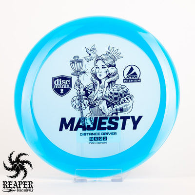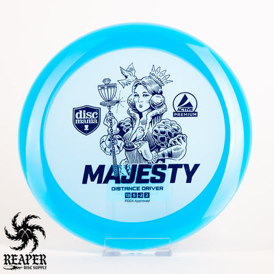 The Discmania Active Premium Majesty is a high-speed distance driver designed for long-range shots. Discmania's Active Premium plastic is one of the best gripping translucent plastics that can take a ton of damage without losing stability.
