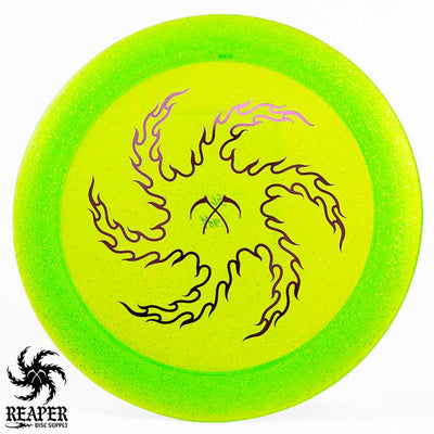 Harness power and precision with the Innova Champion Metal Flake Ape (Reaper Edition). Ideal for strong arms and windy conditions, this high-speed distance driver delivers durable performance with its Metal Flake Champion plastic. Loved by experienced players for its turn resistance and relentless fade, the Ape is your ticket to far-reaching throws on the course. Step up to the challenge, and let the Ape guide you to new disc golf heights.