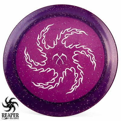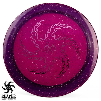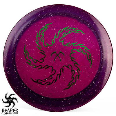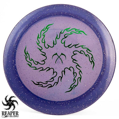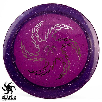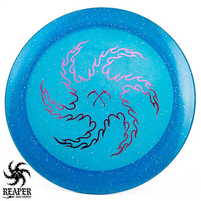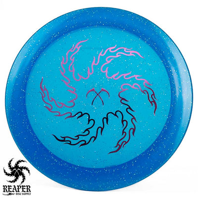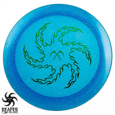Meet the Innova Champion Metal Flake Corvette Reaper Edition, an advanced player's dream distance driver. Crafted from durable Champion plastic and sparkling metal flakes, this disc delivers high-speed, substantial glide, and a reliable fade. Ideal for rugged courses, it maintains flight characteristics for an extended period, enhancing backhand or forehand drives. Elevate your disc golf distance game with the Metal Flake Corvette - Reaper Edition.