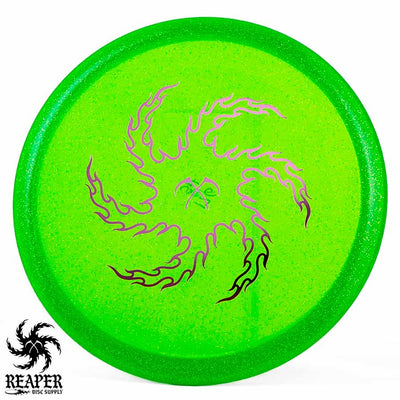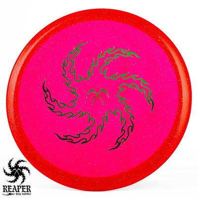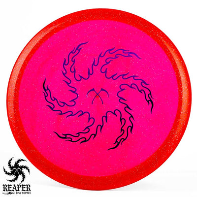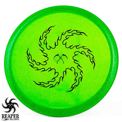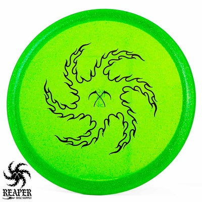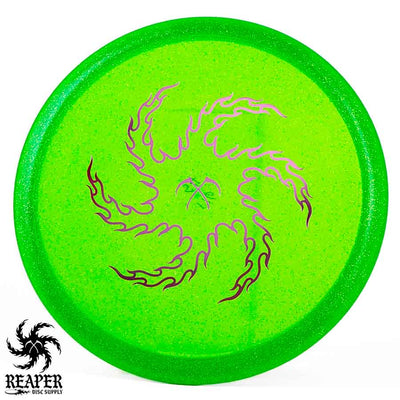 The Innova Metal Flake Champion Shark3 is an overstable midrange driver that will fly dead-straight in a headwind. With a small rim and generous torque resistance, the Shark3 is an excellent forehand mid. Innova's metal flake plastic is very similar to their Champion plastic but with little flakes added which gives it a sparkly dope look. If you need a reliable midrange, check out the Innova Metal Flake Shark3.