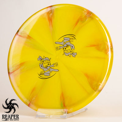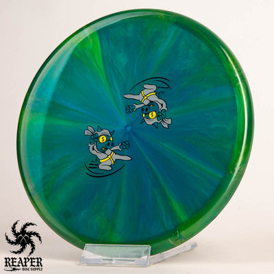 These limited-run Swirly Sublime Profits feature two cute little ninja pigs that look awesome when it's spinning. These Swirly Sublime colors are unbelievable and there are several different stamp colors to choose from!