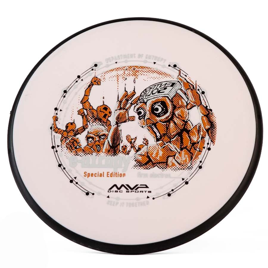 The MVP Electron Entropy is a top-tier putt and approach disc, perfect for players seeking stability and control. Known for its overstable flight, the Entropy excels in headwinds and provides a reliable fade, making it ideal for both forehand and backhand throws. This special edition release features a unique hand-drawn alien stamp, adding a touch of artistry and collectibility to your disc collection.
