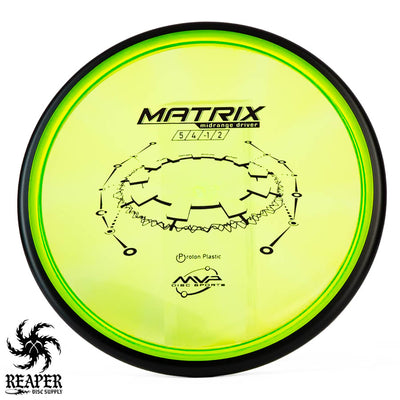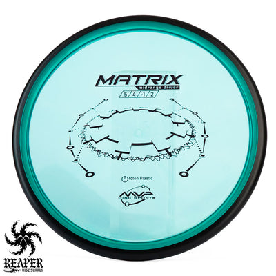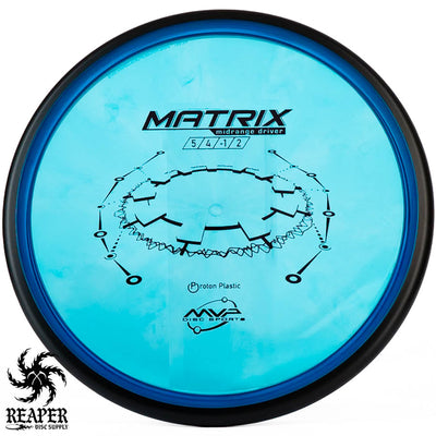 The MVP Proton Matrix is a moderately overstable midrange disc designed for precision and consistency in various conditions. It excels at delivering straight flights with a dependable fade, making it ideal for controlled approach shots and accurate drives. The durable Proton plastic ensures a comfortable grip and long-lasting performance, making the Matrix a reliable choice for players seeking a versatile midrange disc.