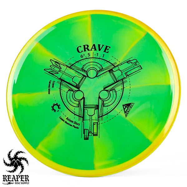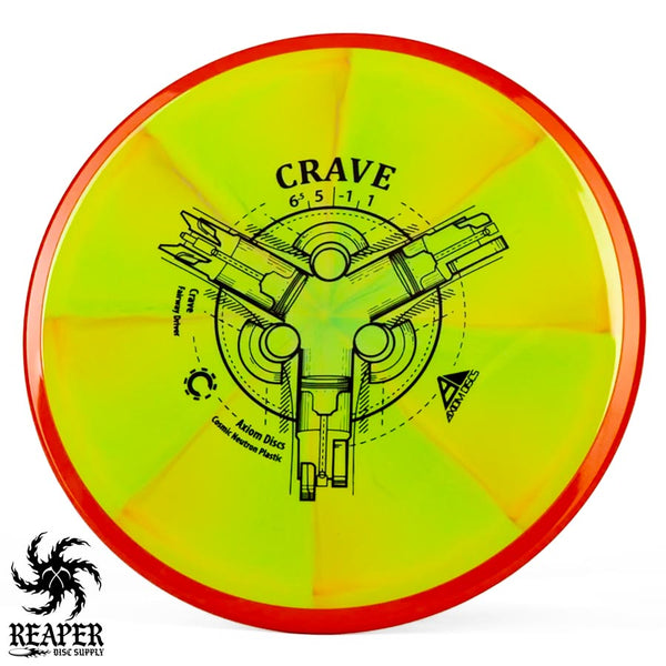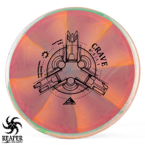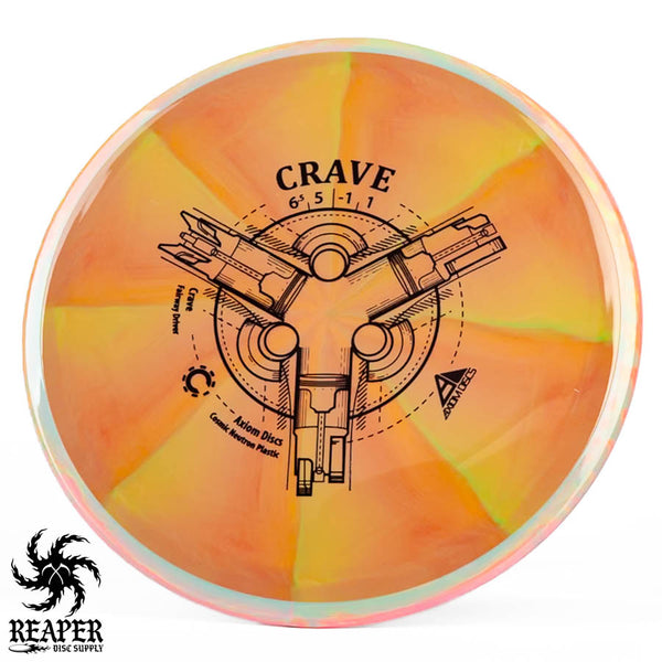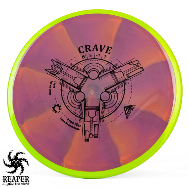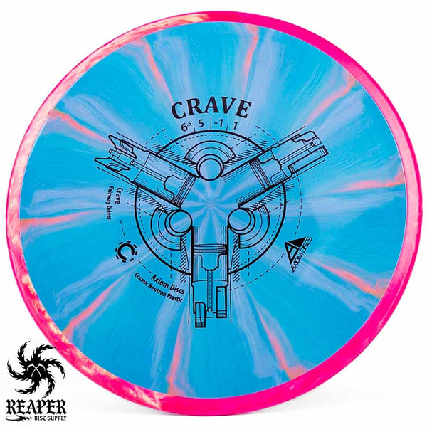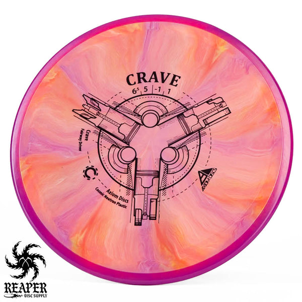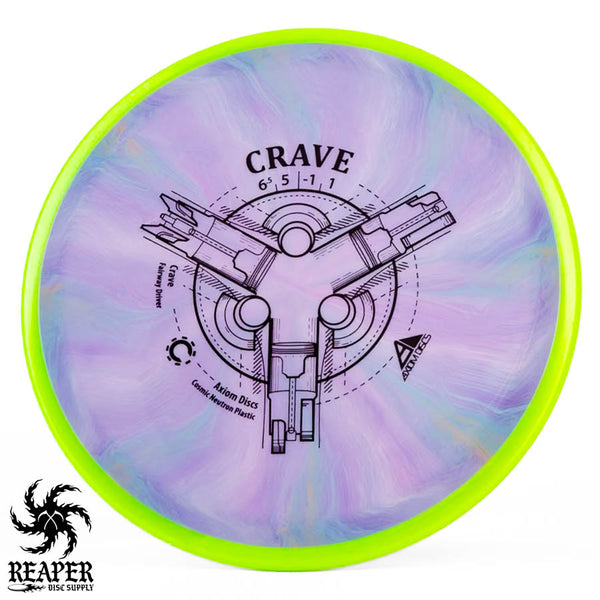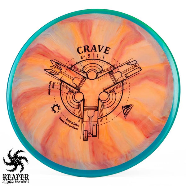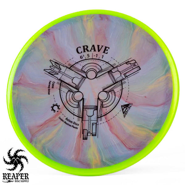 The Axiom Cosmic Neutron Crave is a stable, beginner-friendly disc golf fairway driver and comes in fabulous swirly colors. Axiom's Cosmic Neutron plastic is the same stability as traditional Neutron but is made with bright colors and a rad burst-like effect.