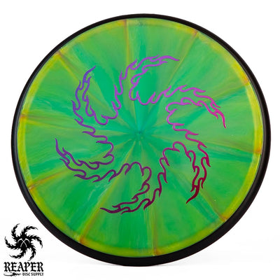 The Reaper Edition MVP Plasma Entropy is an incredibly reliable and overstable putt and approach disc, perfect for precision shots. Its small diameter and flat top provide a comfortable grip, while its consistent and predictable flight make it ideal for forehand throws and windy conditions. With our custom Reaper stamp, this disc is not only functional but also unique to your collection.