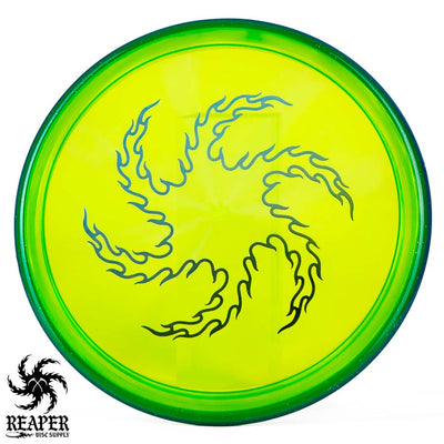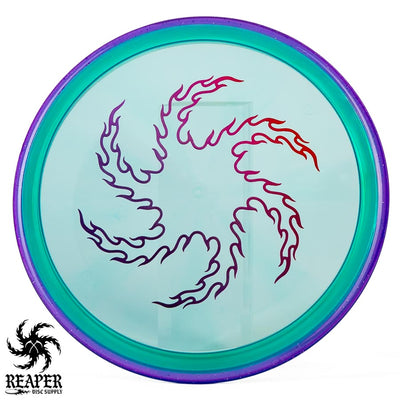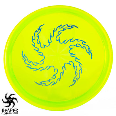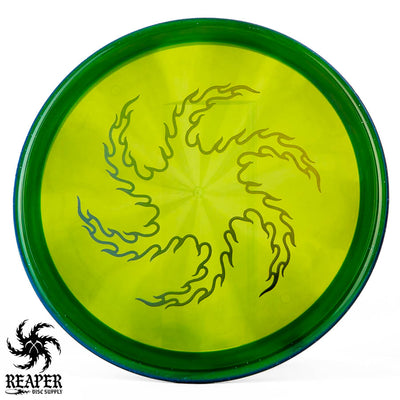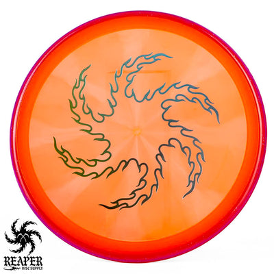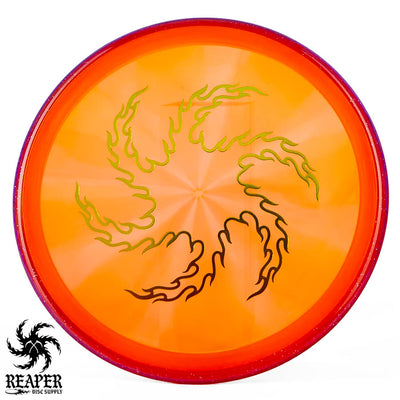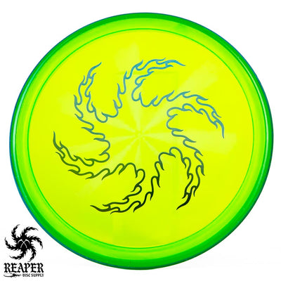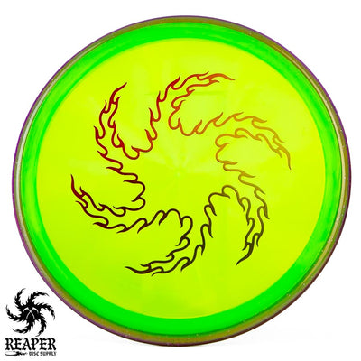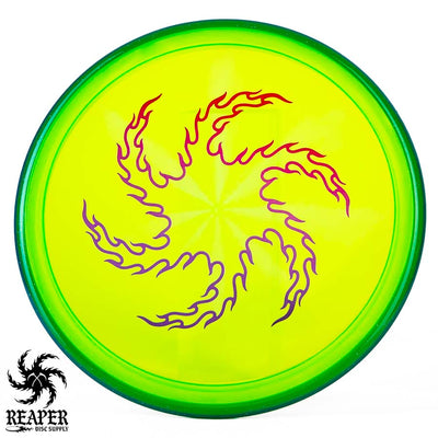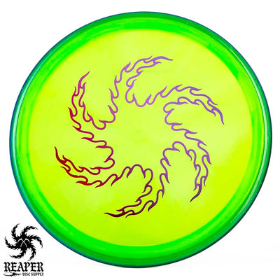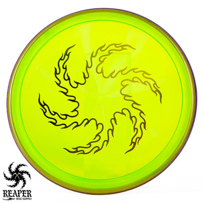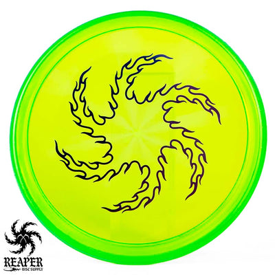 Unleash the beast with the Reaper Edition Axiom Prism Proton Pyro. This beadless mid-range marvel is your ticket to mastering overstable shots with style. With its unrivaled torque resistance, the Pyro flies true to your line, delivering pinpoint accuracy on both forehand and backhand throws. Wrapped in durable and dazzling Prism Proton plastic and adorned with our exclusive Reaper stamp, this disc isn't just about performance—it's about making a statement on the course. Elevate your game and turn heads with the Pyro, the go-to disc for those who demand excellence in every throw.