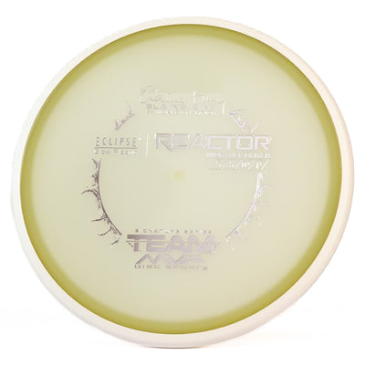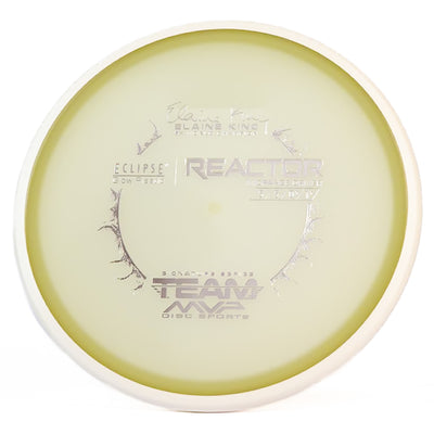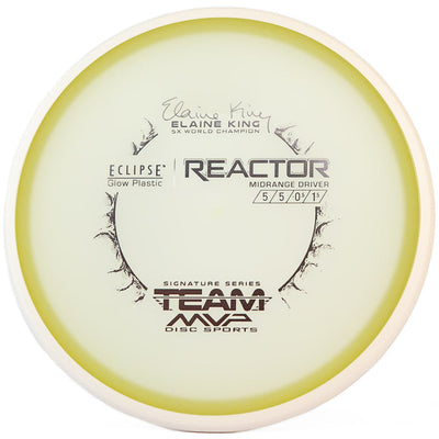 The MVP Reactor is one of the most popular discs in the MVP lineup. The Eclipse 2.0 plastic is one of the brightest and longest lasting glow plastics on the market. You will often see pros like James Conrad reaching for their Reactor for easily controllable midrange shots.