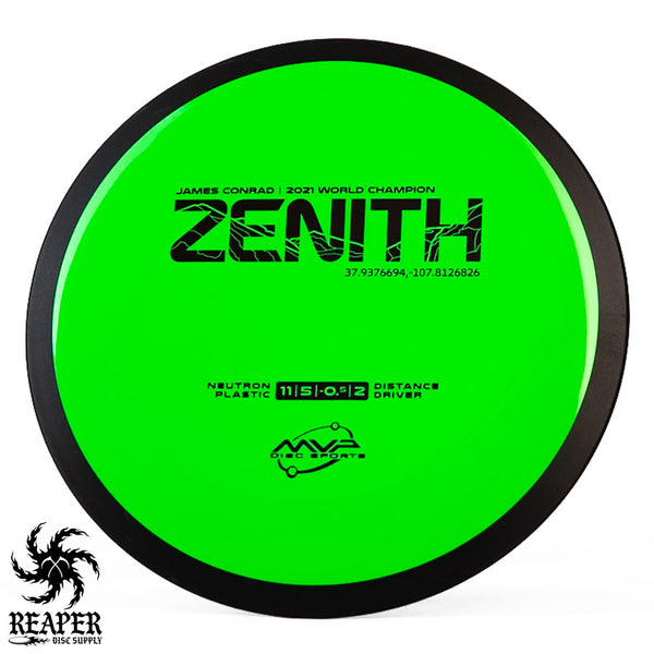 The MVP Neutron Zenith is a slightly overstable distance driver that is great for intermediate and advanced players. The Zenith is great for backhand or forehand drives, and has enough stability to fight a small amount of wind. The flight pattern of this driver reminds me a lot of an Innova Wraith with slightly less stability. The Neutron Zenith is quickly becoming a staple in my bag so give it a shot!