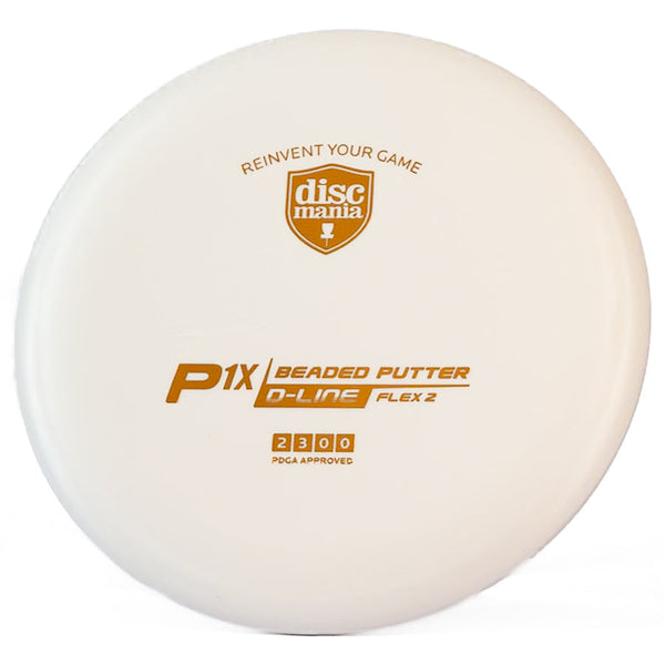 The D-Line Flex 2 P1x is a reliable straight-flying beaded putter that excels at both push putts and spin putts, featuring just enough stability to resist turning over on longer circles edge attempts. This dependable putter sports a low profile and small bead that makes it comfortable for both fan grip and power grip approaches while providing excellent glide that helps it float into the sweet spot of the chains rather than spit out or blow through. Working equally well for touch shots and go-for putts, this workhorse putter in Discmania's base D-Line plastic provides exceptional grip in all conditions without being so soft that it loses its flight integrity when properly seasoned.