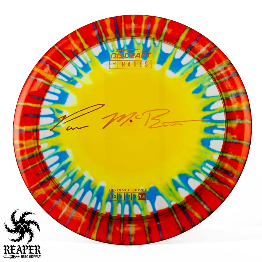 The Discraft Z Fly Dye Hades is an outstanding distance driver in the Paul McBeth signature line. This understable disc is perfect for players with controlled turnover shots to achieve significant distance. With flight numbers of Speed 12, Glide 6, Turn -3, and Fade 2, the Hades offers a remarkable blend of speed, glide, and maneuverability.