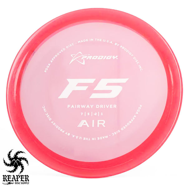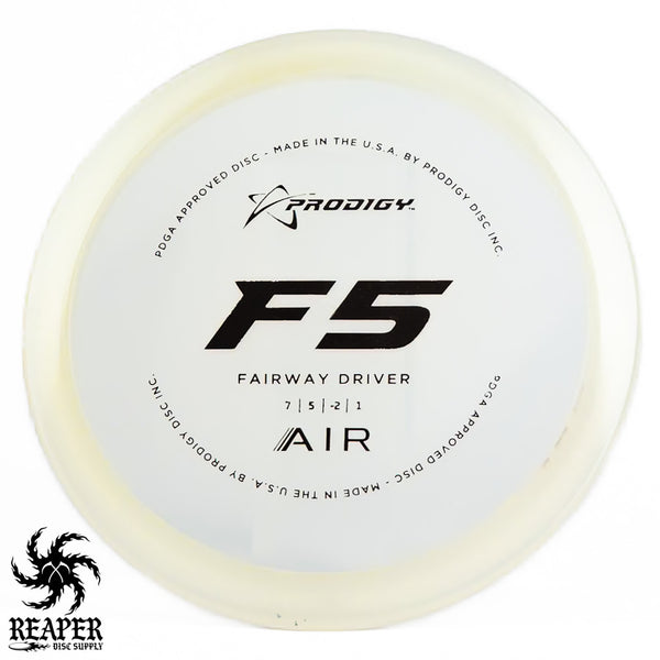 The Prodigy Air F5 in lightweight Air Plastic offers effortless distance and understable flights, catering to new players and lower arm speeds. Durable yet grippy, it's designed for easy control and extended glide, perfect for gaining confidence on the fairway.