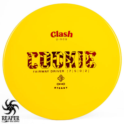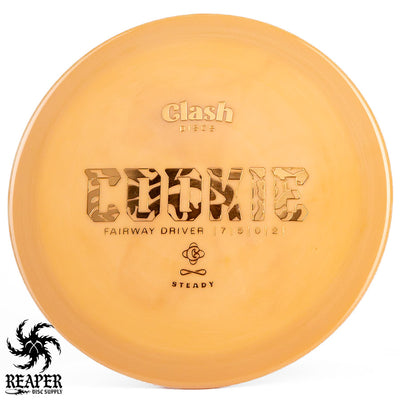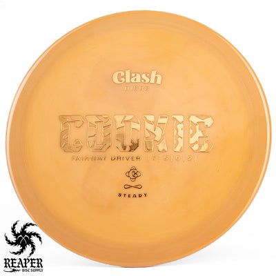 This Clash Discs Cookie is an overstable fairway driver made with rounded rim edges and ultra-premium Steady plastic.