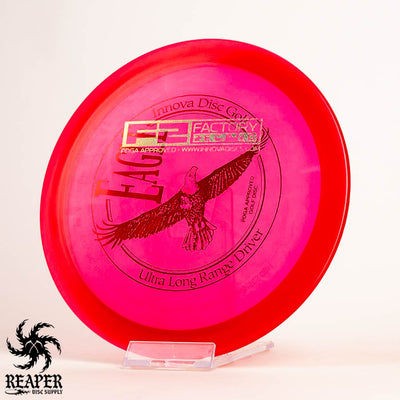 These are F2 (Factory Second) Innova Champion Eagles. F2 discs have cosmetic errors that do not affect the flight of the disc. It is an excellent option to get one of the most popular fairway drivers on the market at a price you can afford!
