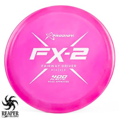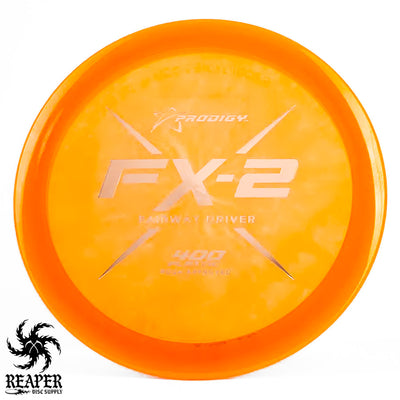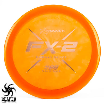 The Prodigy 400 FX-2 is a durable, overstable fairway driver crafted from Prodigy's popular 400 plastic. Known for its durability, this disc offers a superb grip, even in wet conditions. Its stiff rim and pronounced "pop" make it a reliable choice for consistent, controlled throws.