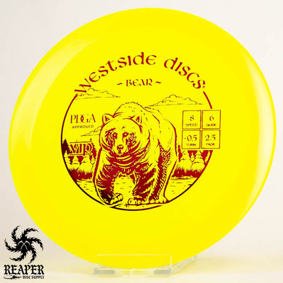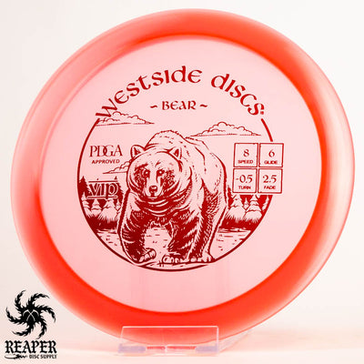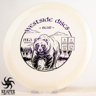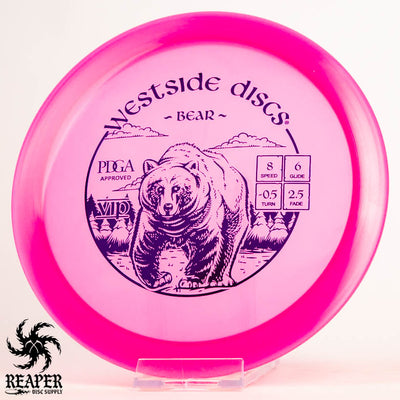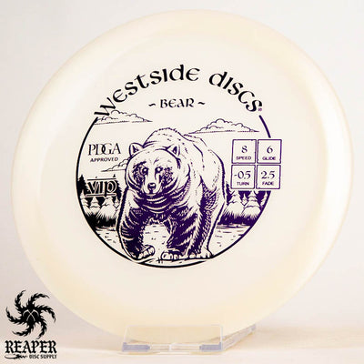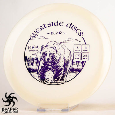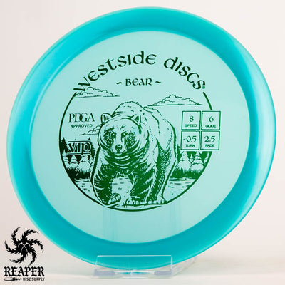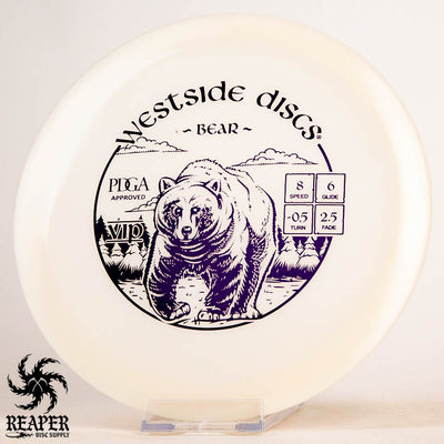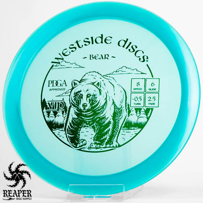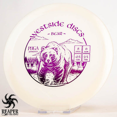 The Westside Discs VIP Bear is a stable to overstable fairway driver great for dependable forehand and backhand shots. This VIP Bear has a similar flight path to an Innova Eagle and the premium grade plastic holds its stability for a long time.